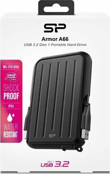 Внешний жесткий диск SILICON POWER 2ТБ Внешний диск HDD Armor A66 SP020TBPHD66SS3K, USB 3.0, черный