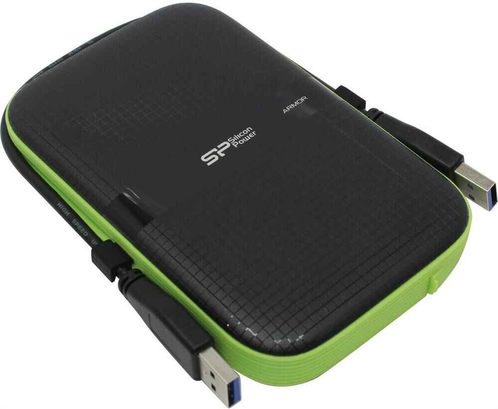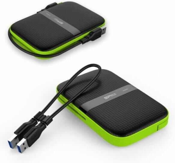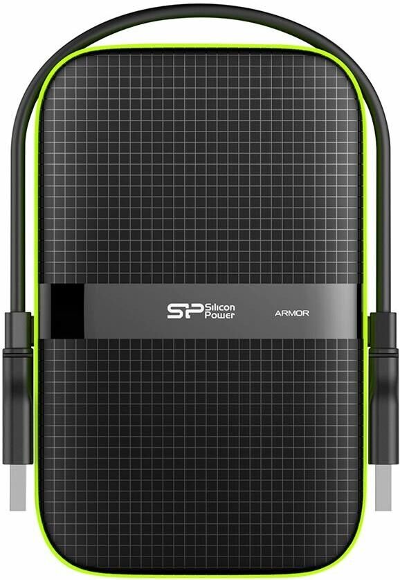 Внешний жесткий диск SILICON POWER 4ТБ Внешний диск HDD Armor A60, USB 3.0, черный/зеленый [sp040tbphda60s3k]