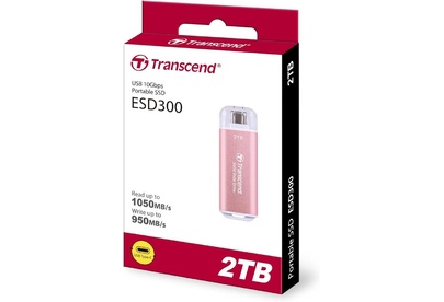Внешний жесткий диск TRANSCEND 2ТБ Внешний диск SSD ESD300 TS2TESD300P, USB-C, запись - 950МБ/с, чтение - 1050МБ/с, розов