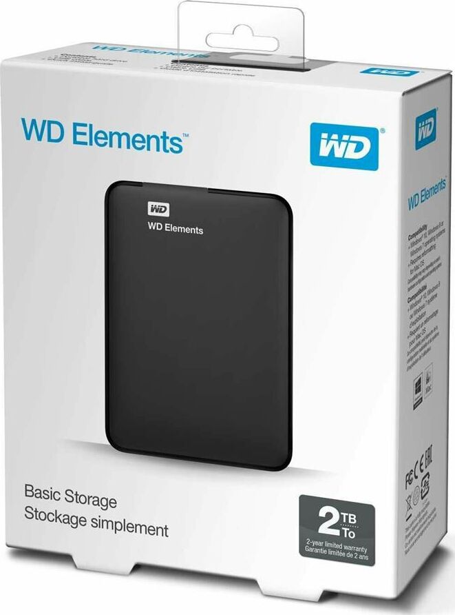 Внешний жесткий диск WD 2ТБ Внешний диск HDD Elements Portable BU6Y0020BBK-WESN, USB 3.0, черный