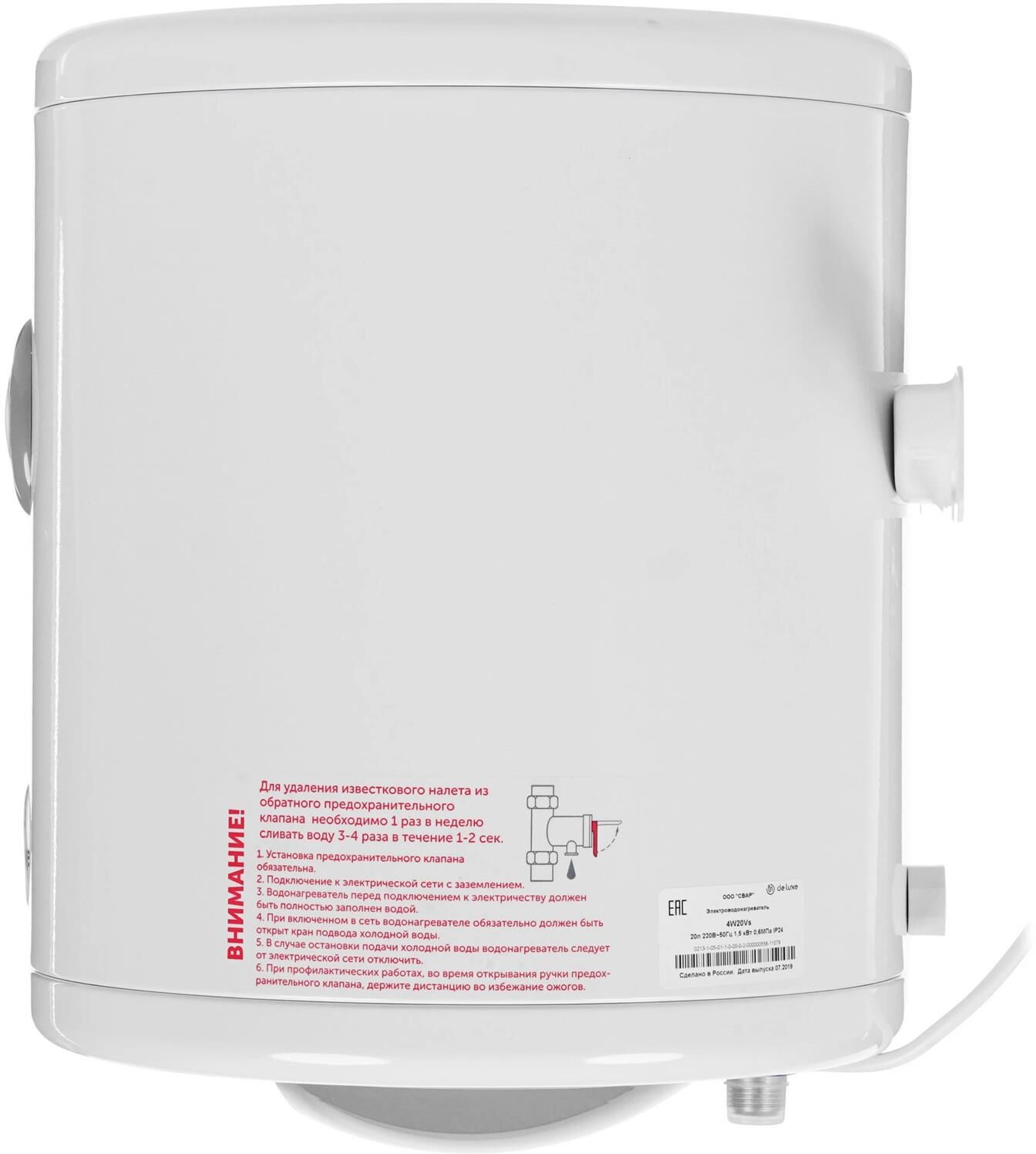 Электрический кабель с вилкой Анкерные болты с гайкой Предохранительный клапан Техническое описание: Цвет - белый Мощность - 1,5 кВт Объём, л - 20 Размеры, мм - высота/диаметр – 414/330 Вес, кг - 11,Антикоррозийный магниевый анод Предохранительный клапан Слой теплоизоляции, существенно снижающий тепло- и энергопотери Внутренний бак из нержавеющей стали Super Strong Inox.