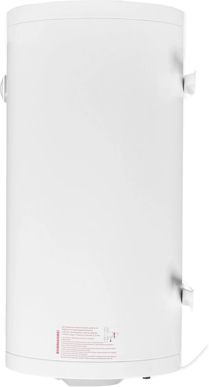 Система поддержания температуры. Световая индикация включения и подогрева. Система полной безопасности СПС безопасности. Антикоррозийный магниевый анод. Предохранительный клапан. Слой теплоизоляции, снижающий тепло- и энергопотери. Внутренний бак эмалированной бактерицидной стеклоэмалью. Внешняя регулировка температуры воды. Комплектация: Электрический кабель с вилкой. Анкерные болты с гайкой. Предохранительный клапан. Техническое описание: Цвет - белый. Мощность - 1,5 кВт. Объём, л - 100. Размеры, мм - высота/диаметр – 821/430. Вес, кг - 29.