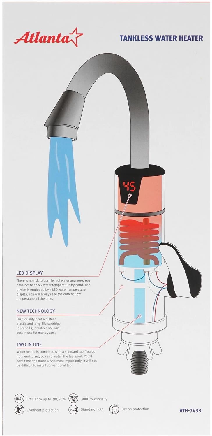 Водонагреватель проточный электрический ATLANTA ATH-7433 (WHITE) Водонагреватель