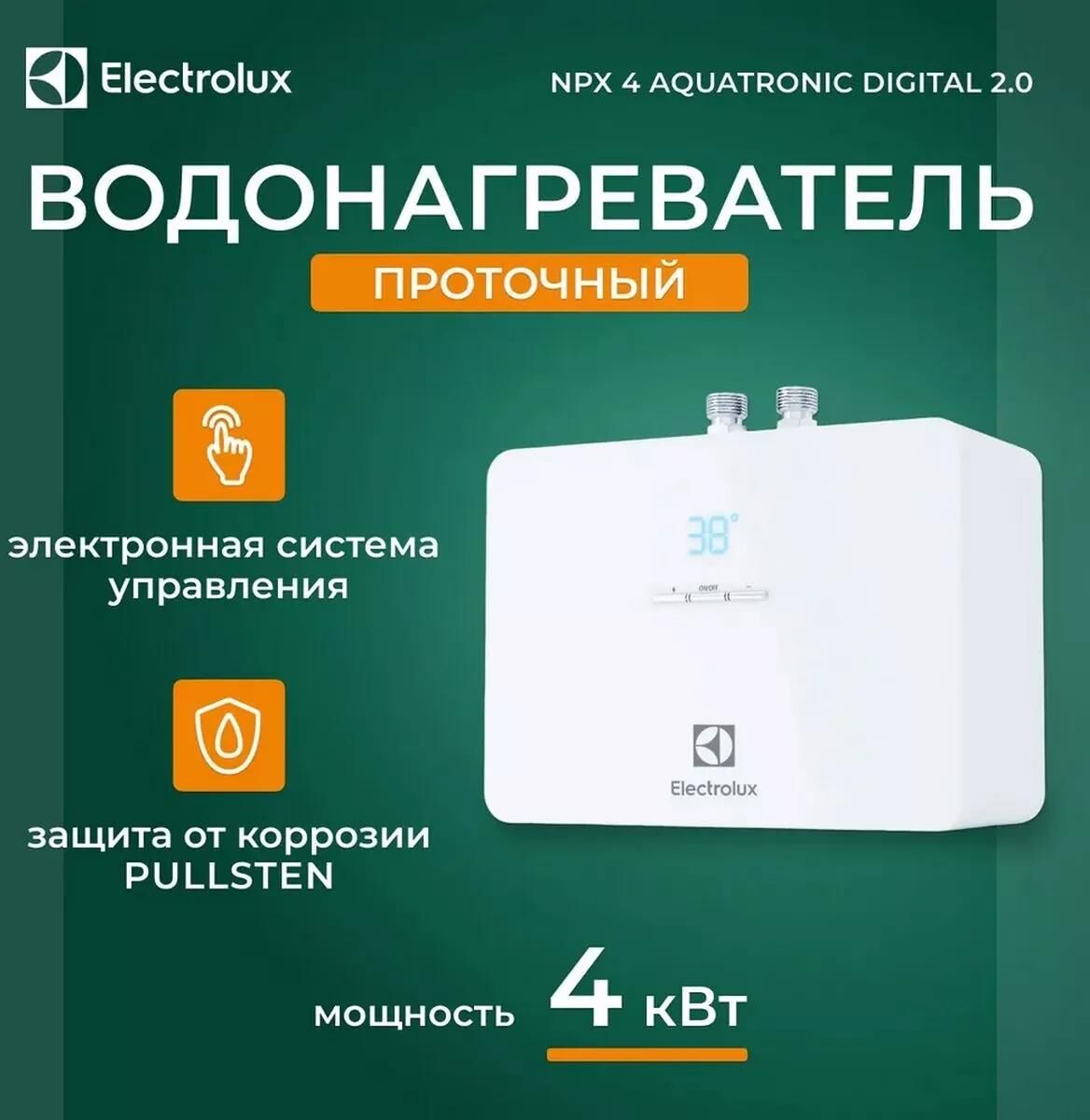 Водонагреватель проточный электрический ELECTROLUX Проточный водонагреватель NPX 4 AQUATRONIC DIGITAL 2.0