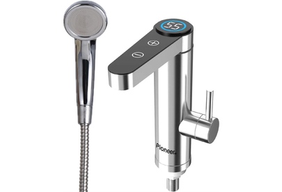 Проточный водонагреватель - смеситель С ДУШЕМ. Цифровой дисплей; Постоянный контроль температуры 30–55 °C; Корпус и ручка из нержавеющей стали; Напряжение питания: 220–240 В; Частота питания: : 50 Гц (60 Гц); Номинальная мощность: 3–3,6 кВт; Расход горячей воды: 2–2,5 л/мин; Рабочее давление: 0,04–0,6 МПа; Температура горячей воды: 30–60 °C; Степень водонепроницаемости: IPx4; Скорость потока воды: от 1 до 4 объемов в час; Длина кабеля питания: 1,5 метра