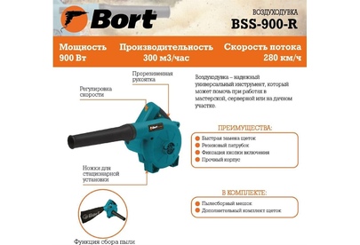 Вес брутто, кг: 2,58. Вес изделия, кг: 1,8. Вес нетто, кг: 2,58. Габариты упаковки, см: 35,5 x 19,5 x 22,5. Гарантия, г: 2. Длина кабеля, м: 2. Максимальная производительность, м3/час: 300. Модель: BSS-900-R. Напряжение, В: 220. Потребляемая мощность, Вт: 900. Расширенная гарантия, г: 5. Регулировка скорости. Скорость холостого хода, об/мин: 0...16 000. Тип пылесоса: Воздуходувка. Уровень шума, дБ: 75. Функция выдува: Да. Частота тока, Гц: 50.