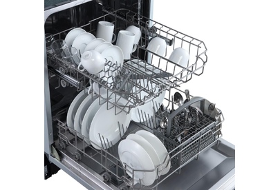 Встраиваемая полноразмерная *60 посудомоечная машина расчитана на 12 комплектов. Отсрочка запуска 3/6/9ч. LED-индикация. Класс А+. Режим 1/2 загрузки. 5 программ: интенсив, ECO, обычная, 90 минут, быстрая. Расход воды за цикл 11л. Энергопотребление за цикл 0,75 кВт*ч. Габариты ВхШхГ: 81,5x59,8x55 см.