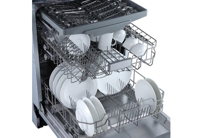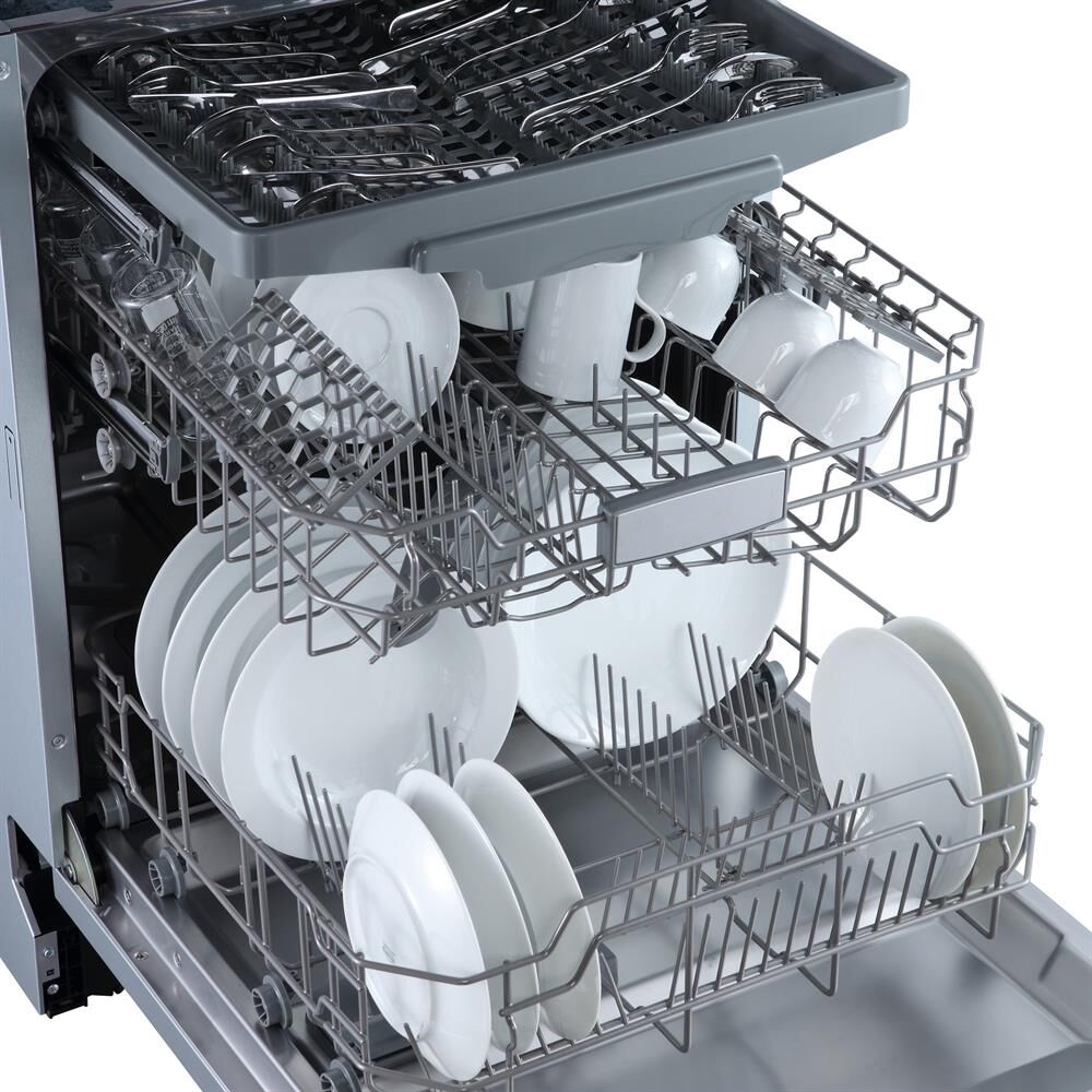 Встраиваемая полноразмерная *60 посудомоечная машина расчитана на 14 комплектов. Отсрочка запуска 1-24ч. LED-дисплей. LED-индикация. Класс А+. Режим 1/2 загрузки. 6 программ: интенсив, ECO, стекло, обычная, 90 минут, быстрая. Режим дополнительной сушки. Регулируемая по высоте корзина. Выдвижная корзина для столовых приборов. Расход воды за цикл 11л. Энергопотребление за цикл 0,75 кВт*ч. Габариты ВхШхГ: 81,5x59,8x55см.
