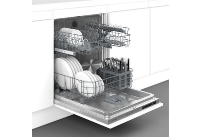вместимость 14 комплектов посуды, уровень шума 48 Дб, среднее потребление воды за цикл 11,5 литров, 6 программ, коллекторный мотор, частичная защита от протечек Overflow, кнопочный тайм дисплей Е5, отсрочка запуска 1-24 часа, режим половинной загрузки, функция усиленной сушки.
