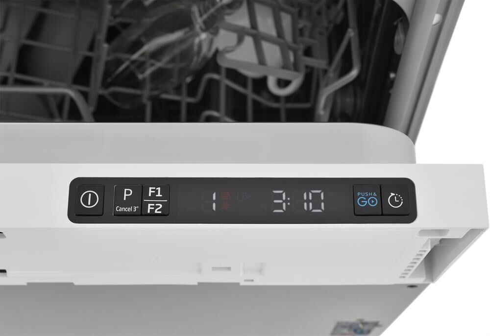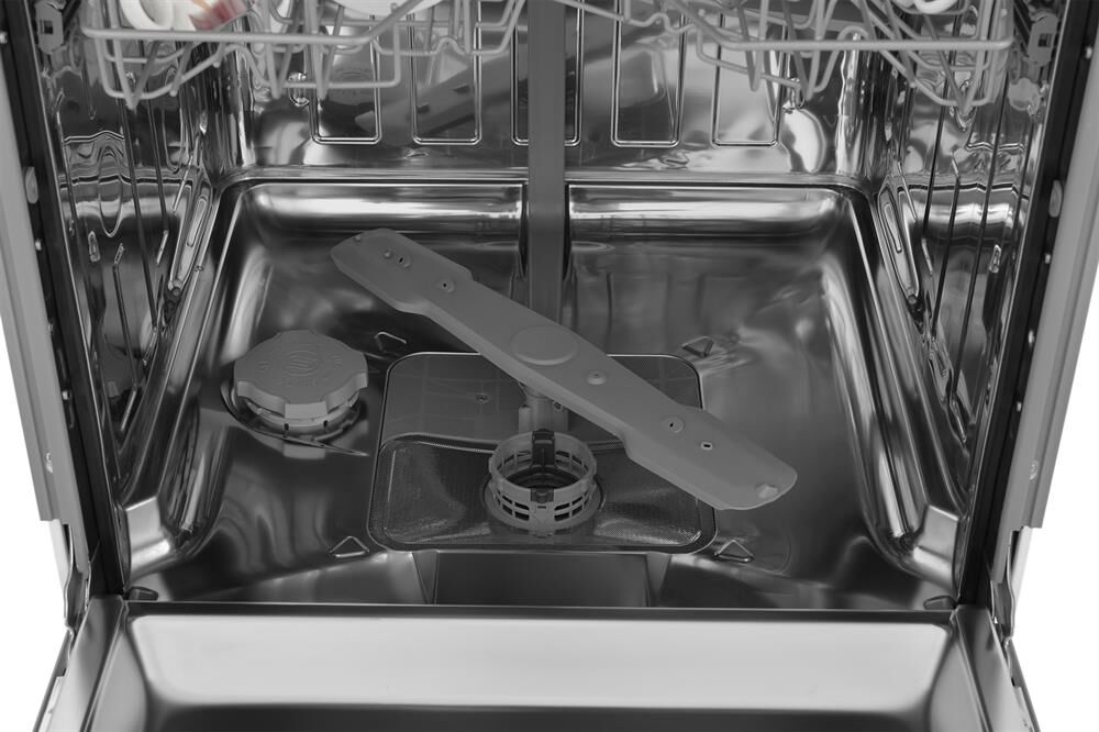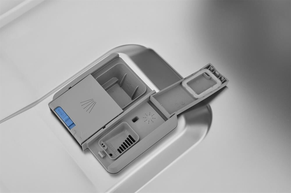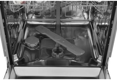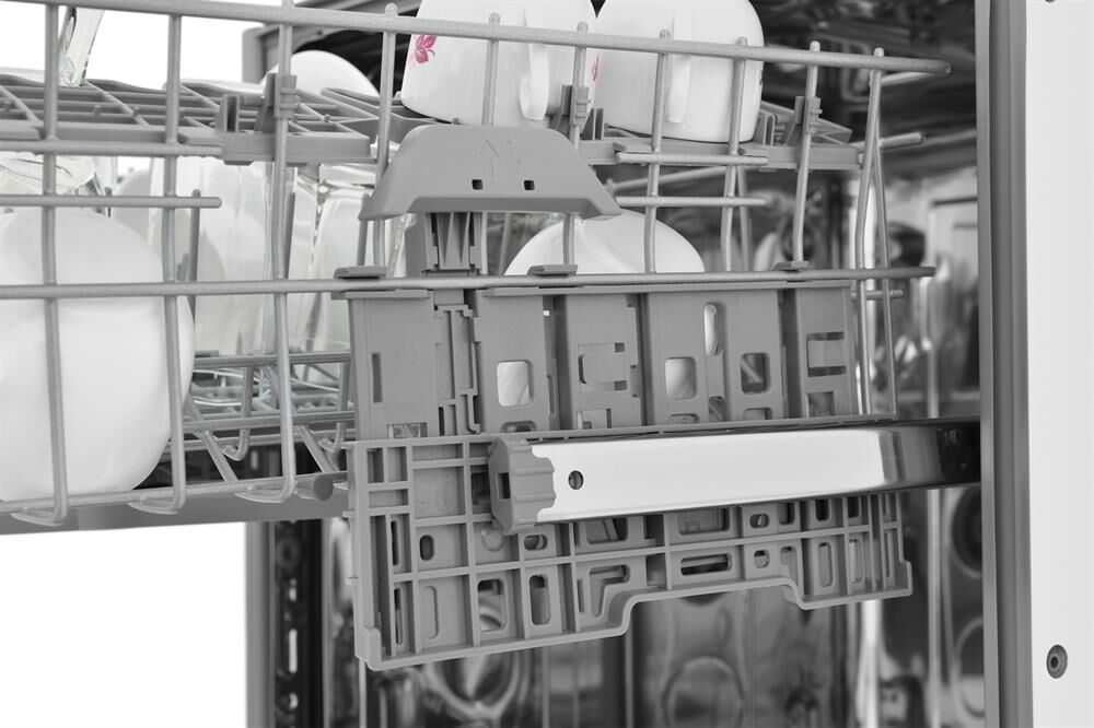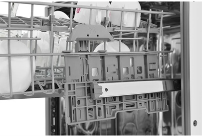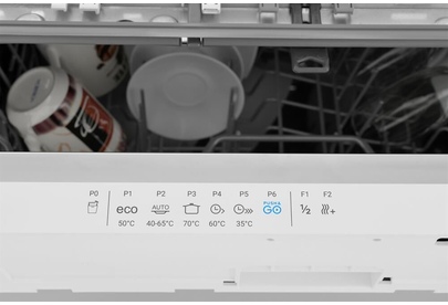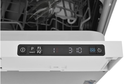 вместимость 14 комплектов посуды, уровень шума 48 Дб, среднее потребление воды за цикл 11,5 литров, 6 программ, коллекторный мотор, частичная защита от протечек Overflow, кнопочный тайм дисплей Е5, отсрочка запуска 1-24 часа, режим половинной загрузки, функция усиленной сушки.