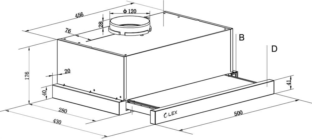 Встраиваемая вытяжка LEX Hide 500 черный управление: кнопочное (1 мотор)