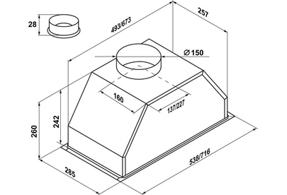 Встраиваемая вытяжка MAUNFELD Вытяжка встраиваемая Urania 74 нержавеющая сталь управление: кнопочное (1 мотор)