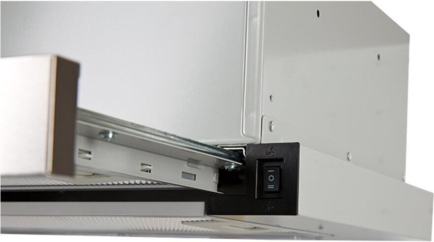 Вид установки встраиваемая Нержавеющая сталь, Ширина 500мм, Воздушный поток 500 м/ч, 2 стандартные лампы, Мощность освещения 2x25 Вт, 2 aлюминиевыйх фильтра, необходимое количество угольных фильтров - 2 шт, Модель угольного фильтра FU-24, Уровень шума 34-50 дБ, управление - тумблер, Вес нетто 6,5 кг, Китай