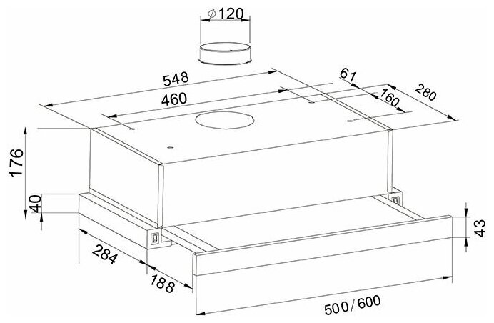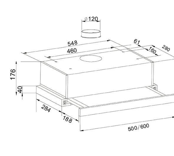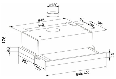 Вид установки встраиваемая Нержавеющая сталь, Ширина 600мм, Воздушный поток 500 м/ч, 2 стандартные лампы, Мощность освещения 2x25 Вт, 2 aлюминиевыйх фильтра, необходимое количество угольных фильтров - 2 шт, Модель угольного фильтра FU-20, Уровень шума 34-50 дБ, управление - тумблер, Вес нетто 7 кг, Китай