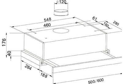 Вид установки встраиваемая Нержавеющая сталь, Ширина 600мм, Воздушный поток 500 м/ч, 2 стандартные лампы, Мощность освещения 2x25 Вт, 2 aлюминиевыйх фильтра, необходимое количество угольных фильтров - 2 шт, Модель угольного фильтра FU-20, Уровень шума 34-50 дБ, управление - тумблер, Вес нетто 7 кг, Китай
