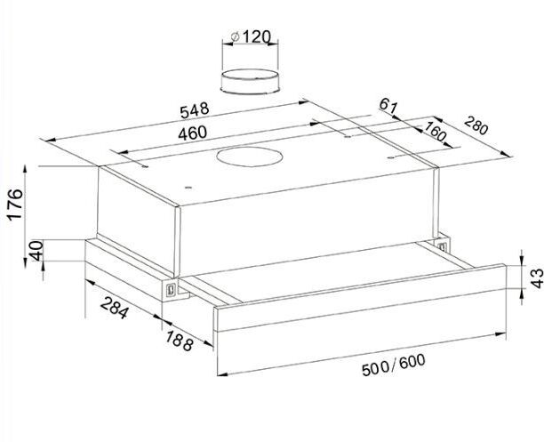Вид установки встраиваемая Белый, Ширина 600мм, Воздушный поток 500 м/ч, 2 стандартные лампы, Мощность освещения 2x25 Вт, 2 aлюминиевыйх фильтра, необходимое количество угольных фильтров - 2 шт, Модель угольного фильтра FU-20, Уровень шума 34-50 дБ, управление - тумблер, Вес нетто 7 кг, Китай