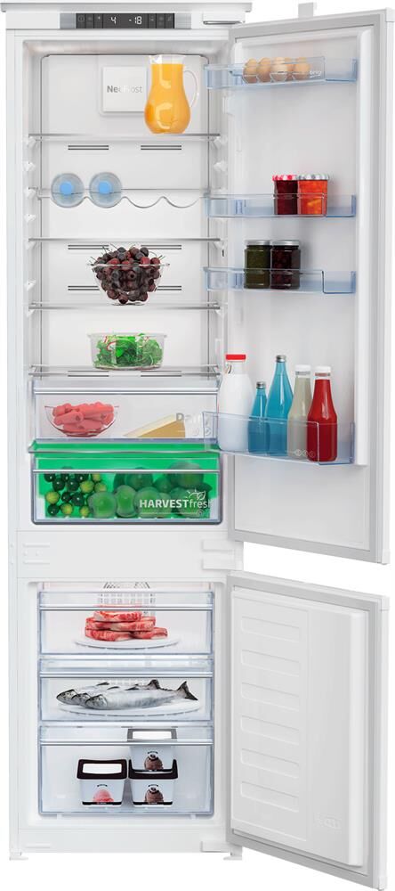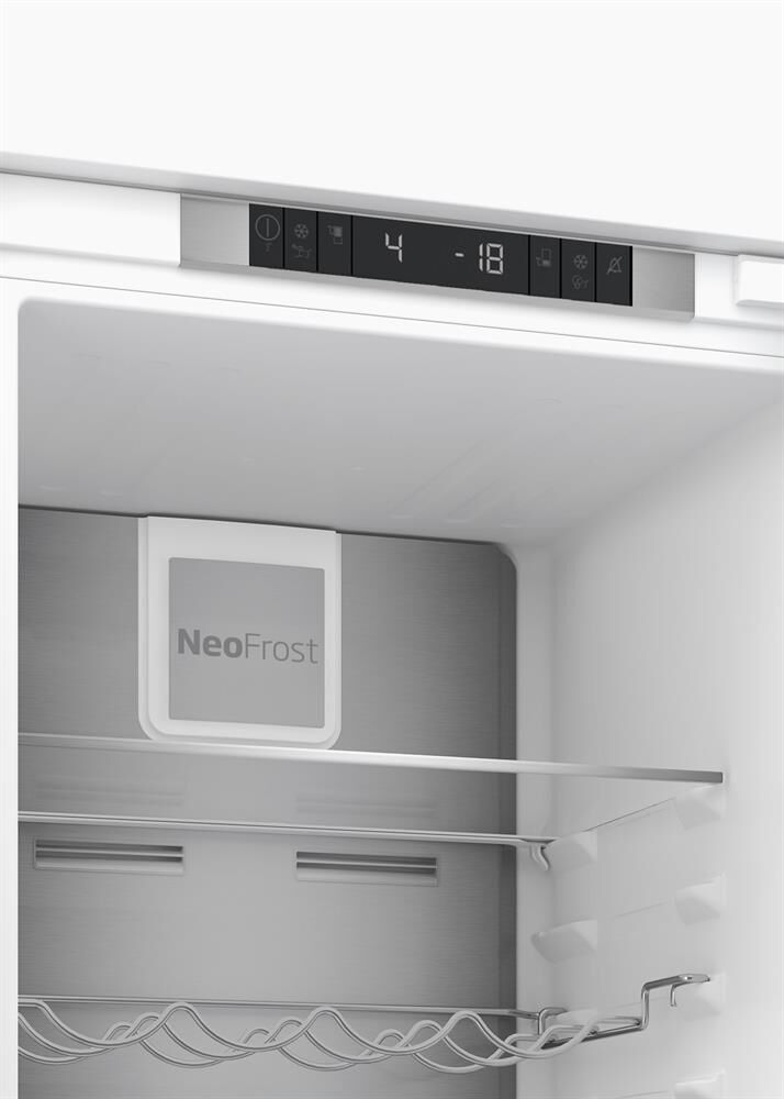 Встраиваемый холодильник с системой охлаждения No Frost, 193 см, Уровень шума (дБ(А)): 40, Время сохранения температуры без электроэнергии (ч): 13, Тип освещения: LED (верхнее), Тип управления: Электронное, объем холодильной камеры 215л, объем морозильной камеры 69л, Vitamine zone, винная полка. Антибактериальный уплотнитель дверей, технология сохранения свежести Active Fresh Blue light, Режим экономии энергии Eco Mode, Режим «Отпуск», Суперзаморозка Quick Freeze, Быстрое охлаждение Quick Cool, Перенавешиваемые двери. Количество ящиков в морозильной камере - 3, Дверные полки в холодильном отделении - 4 шт, Регулируемые полки из закаленного стекла - 4 шт, Хромированная полка для бутылок, Зона сохранения свежести, подставка для яиц, форма для льда.