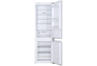 Встраиваемый двухкамерный холодильник с нижним расположением морозильной камеры Общие данные: Размеры: высота: 177.2 см ширина: 55.5 см глубина: 54 см Общий объем/ Полезный объем: Холодильника: -/228 л Холодильной камеры: -/169 л Морозильной камеры: -/59 л Электронное управление Класс энергопотребления: A Климатический класс: SN-T (от +10°С до +43°С) Количество компрессоров: 1 Годовое потребление энергии: 375 кВтч/год Цвет: белый Холодильное отделение: 5 полок 3 полки на дверце Система Nо Frost (Frost Free, Ноу Фрост) Освещение LED Суперохлаждения Температурный диапазон: 0-10°C Ящики для овощей с регулировкой влажности Ящики для овощей: 1 шт. Кол-во лотков для яиц: 3 шт. Морозильное отделение: Система Nо Frost (Frost Free, Ноу Фрост) Мощность замораживания: 10 кг/сутки Время поддержания температуры при отключении электроэнергии: 12 ч Температурный диапазон: -16...-24°C Суперзамораживание 3 ящика Дополнительная информация: Стандартный компрессор Сенсорный дисплей Функция Отпуск Уровень шума дБ (А): 42 Тип хлад