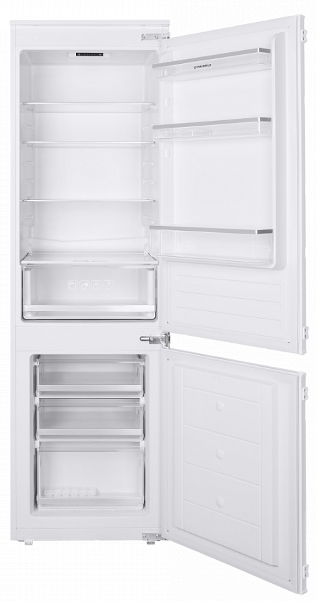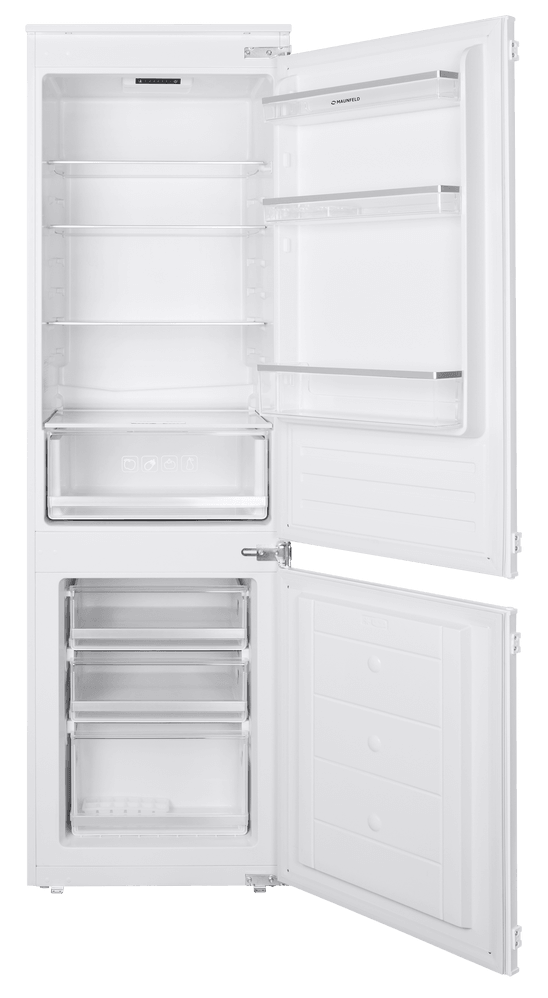 Холодильник Maunfeld MBF177SW — это двухкамерный холодильник, выполненный в белом цвете. Классический дизайн подойдет к абсолютно любому кухонному интерьеру и дополнит его. Модель имеет стандартные габариты, поэтому будет удобна для встраивания. Высота холодильника 177,6 см, ширина — 54 см, глубина — 54 см. В его основу положен надежный и экономичный инверторный компрессор, соответствующий классу энергопотребления А+. Классификация по уровню энергопотребления дает объективное представление о том, насколько эффективно устройство расходует данный ресурс. Холодильник Maunfeld MBF177SW оборудован электронным дисплеем с цифровой индикацией температуры. Помимо этого, светодиодная подсветка ярко освещает внутреннее пространство камеры и отличается долговечностью и потребляет минимум электроэнергии. В холодильном отделении товара имеется 7 регулируемых полок из закаленного стекла, три из которых на двери, что позволяют настроить пространство устройства под предпочтения пользователя. В м