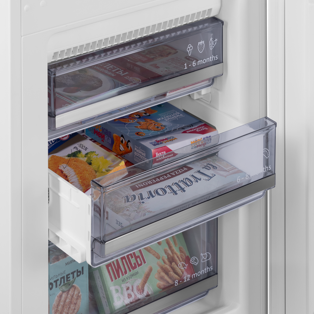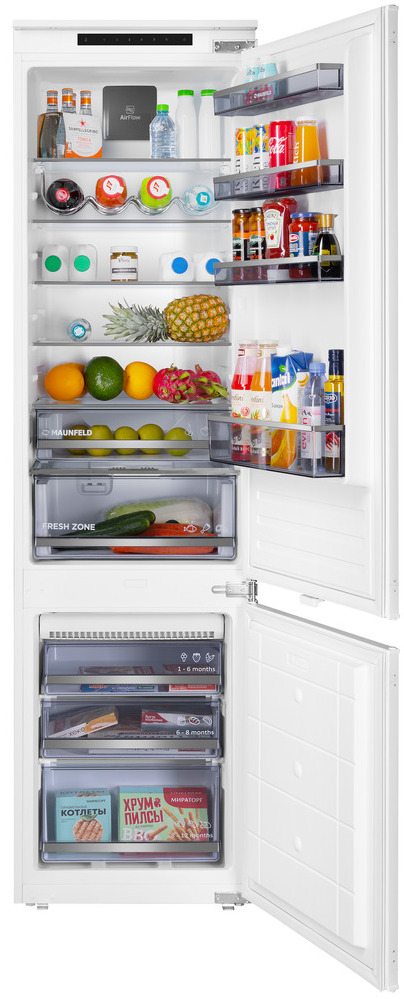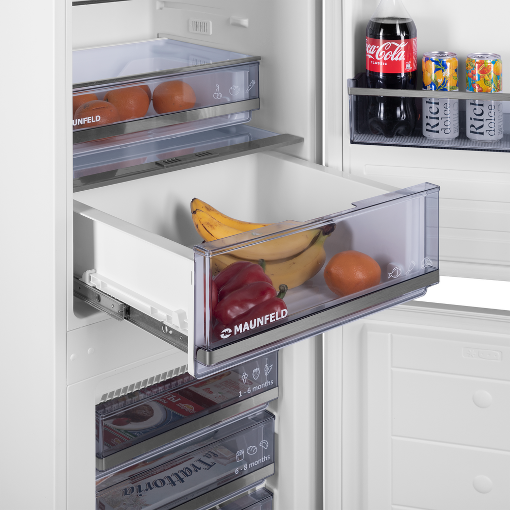 Встраиваемый холодильник с морозильной камерой Maunfeld MBF193NFFWGR – это уникальное сочетание стиля, функциональности и надежности. Гарантийный срок составляет 36 месяцев, что подтверждает надежность и долговечность этой модели. Дизайн холодильника выполнен в современном стиле коллекции Модерн. Белый цвет корпуса идеально впишется в любой интерьер. Вместе с тем, общий объем холодильника составляет 285 литров, что обеспечивает достаточно места для хранения продуктов. Особенностью этой модели является система NoFrost в морозильном отделении, которая предотвращает образование инея и обледенения. Это значительно упрощает процесс эксплуатации и обслуживания устройства. Также стоит отметить наличие электронного управления и сенсорных переключателей, что делает использование холодильника максимально удобным и простым. Внутри холодильника предусмотрены четыре полки из закаленного стекла, регулируемые по высоте, два ящика для овощей и фруктов, а также четыре полки на двери. В морозильн