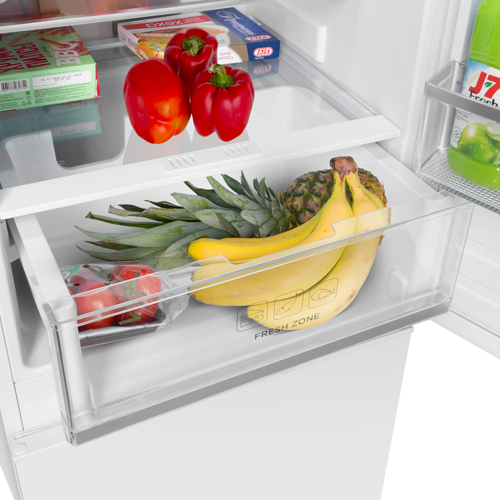 Холодильник Maunfeld MBF193NFW является встраиваемым. Система NoFrost в обоих камерах не допускает образование инея на стенках и освобождает вас от необходимости ручного размораживания. Внутреннее антибактериальное покрытие препятствует образованию микробов, тем самым обеспечивает свежесть продуктов и помогает сохранять их полезные свойства. С помощью дисплея, расположенного над дверцей, вы сможете управлять настройками устройства. Ключевые преимущества: NoFrost Антибактериальное покрытие Дисплей
