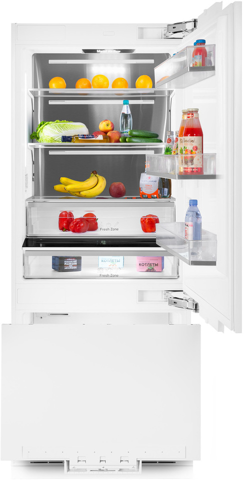 Холодильник Maunfeld MBF212NFW1 оснащен системой охлаждения Total No Frost благодаря ей на стенках не образуется иней, а размораживание происходит автоматически. Зона свежести позволяет хранить мясо или рыбу с автоматической температурой от −1°C до до +5°C, это идеальный климат для свежих продуктов. Имеется функция «блокировка от детей», она защитит от случайного нажатия. Ключевые особенности: Сенсорное управление Зона свежести Блокировка от детей