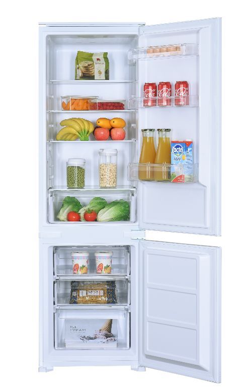 Размеры (ВхГхШ) мм 1777х540х540 * Общий полезный объем, л. 248 (184+64) * Цвет белый * Управление электронное * Класс энергоэффективности A * Климатический класс ST * Крепления фасада двери - скользящее В комплекте холодильника идет монтажный комплект крепления для навешивания фасадов и крепления холодильника к шкафу *