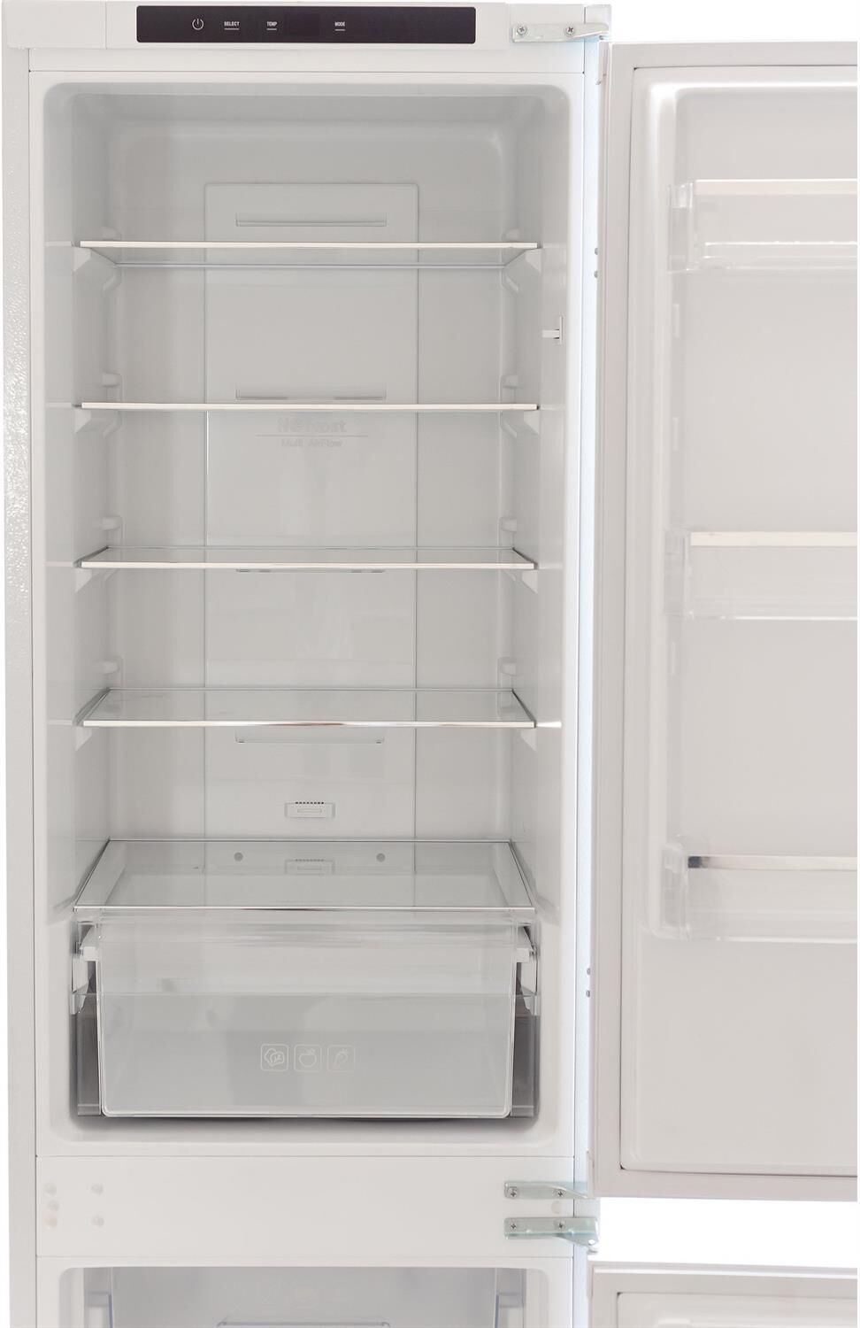 Габариты ВхШхГ, см: 177х55,5х54,5. Объём 250 литров. 177 см комби, полный No Frost, перенавешиваемая дверь, серебристая отделка на полке двери и стеклянной полке, шелкография на ящике, скользящими направляющими, 4 стеклянные полки, 3 дверные полки, 3 ящика.