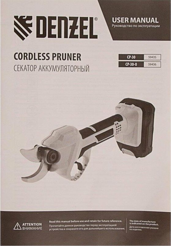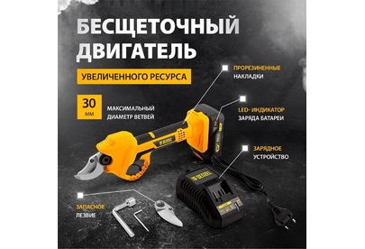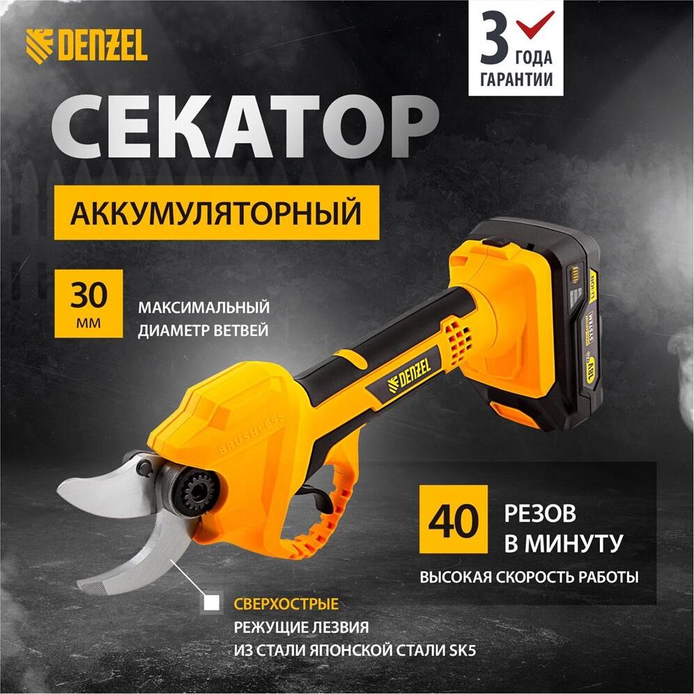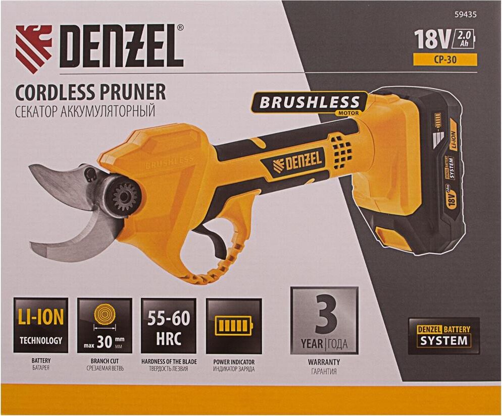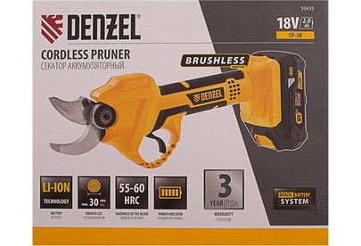 Высоторез DENZEL Секатор аккумуляторный CP-30, 18В LI-ION 59435