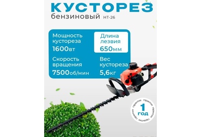 "Длина лезвия:650мм Запуск ручной стартер Мощность, л.с 1 лс Обороты, об/мин 7500 Объем двигателя, см³ 22,5 Объем топливного бака, л 0,6л Поворотная ручка да Тип двигателя бензиновый, 2-тактный с воздушным охлаждением Тип ножа двусторонний Толщина реза 12 мм Уровень шума 95дБ Мощность, Вт 1600"" 1)Высокая производительность 2)Удобство в работе 3)Поворотная ручка"