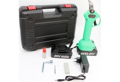 Тип АКБ: Li-Ion, Makita-type* Напряжение АКБ: 20В. Емкость АКБ: 1500мАч. Частота: 50-60Гц. Кол-во скоростных режимов - 1. Тип ножа - односторонний. Входное напряжение з/у: 100-240В. Комплектация: 1 шт секатор. 2 шт АКБ. 1 шт зарядное устройство. 1 шт шестигранный ключ. 1 шт торцовочный ключ. 1 шт масленка. 1 шт точильный камень. 1 шт руководство по эксплуатации. 1 шт кейс. *Аккумулятор Makita в комплект не входит.