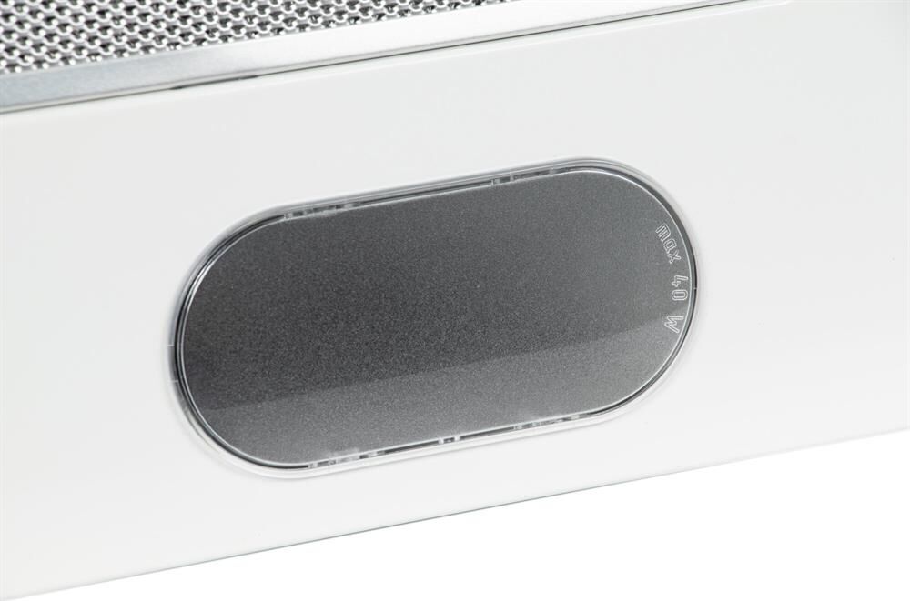 Коллекция Classic, мощность -400 м3/ч, 3 скорости, ползунковое переключение, анодорованный алюминиевый рамочный фильтр, шумность- 54 дБ, работает только в режиме вытяжки, 2х40Вт, цвет - белый