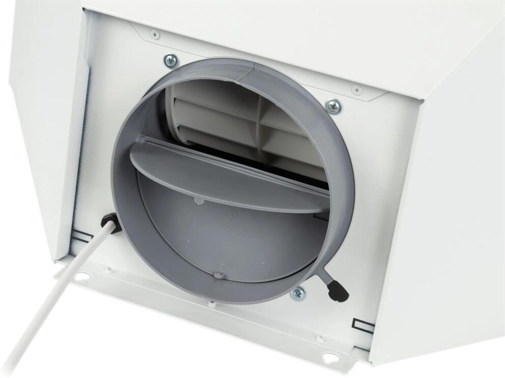 каминная пристенная, ширина встраивания: 60 см, режимы работы: отвод / циркуляция, антивозвратный клапан, производительность: 650 куб.м/ч, количество двигателей: 1, цвет белый