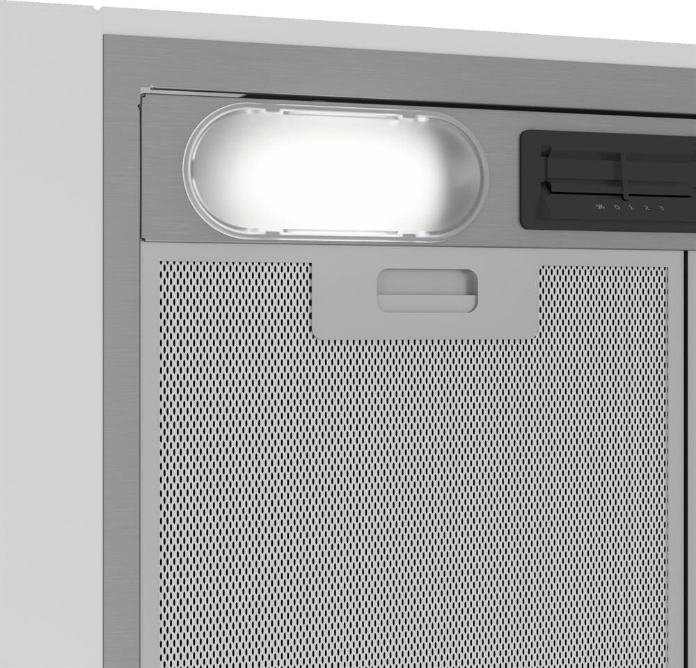 Размеры без упаковки (ВхШхГ), см - 23,8x53x31. Вытяжка полностью встраиваемая 52 см. Производительность 381 м3/ч; Уровней скорости: 3; жироулавливающий фильтр; тип освещения: LED; Тип управления - Механическое, уровень шума 61дБ, цвет - нержавеющая сталь