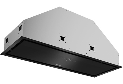 Полностью встраиваемая, в шкаф шириной 90 см, Электронное сенсорное управление, Количество режимов: 3, Производительность (м3/ч): 850, Таймер, Алюминиевый жировой фильтр, LED лампа освещения, 2 Вт, размеры прибора 275х798х285 мм, цвет: черное стекло.