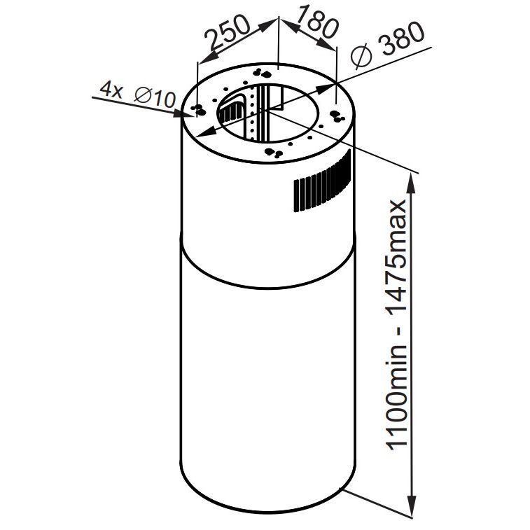 Диаметр отверстия воздуховода, мм