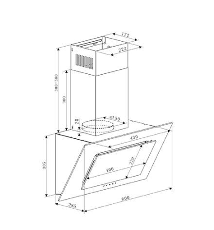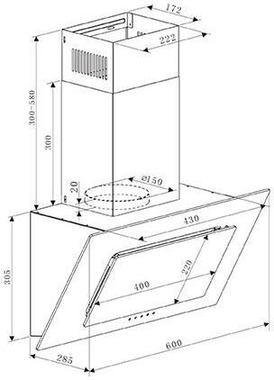 Белый, Ширина 600мм, Воздушный поток 750 м/ч, 2 LED лампы, Мощность освещения 2x3 Вт, 1 aлюминиевый фильтр, необходимое количество угольных фильтров - 2 шт, Модель угольного фильтра VU-02, Уровень шума 44 дБ, кнопочное управление, Вес нетто 9,4 кг, Турция