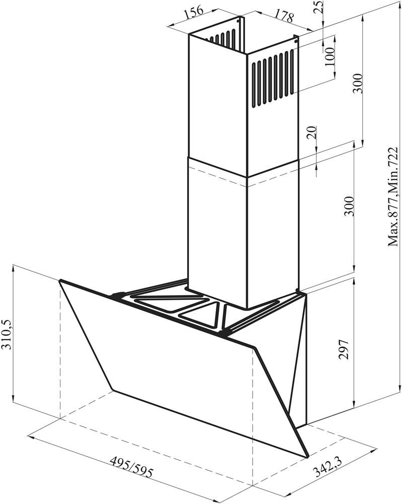 Белый, Ширина 500мм, Воздушный поток 500 м/ч, 1 LED лампа, Мощность освещения 1x2 Вт, 1 aлюминиевый фильтр, необходимое количество угольных фильтров - 2 шт, Модель угольного фильтра FE-01, Уровень шума 44 дБ, кнопочное управление, Вес нетто 6,4 кг, Турция