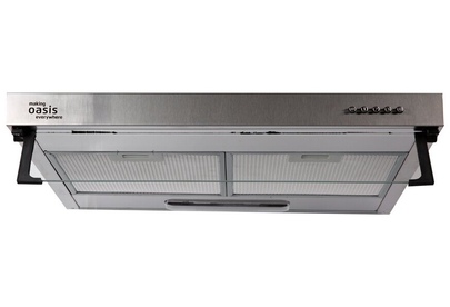 Нержавеющая сталь, Ширина 600мм, Воздушный поток 400 м?/ч, стандартная лампа, Мощность освещения 1x28 Вт, 2 aлюминиевыйх фильтра, необходимое количество угольных фильтров - 2 шт, Модель угольного фильтра VU-02, Уровень шума 44 дБ, управление -кнопочное, Вес нетто 5,3 кг, Турция