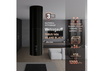 WEISSGAUFF Вытяжка каминная Tubus 1406 Island, кнопочное управление, черный [430315]