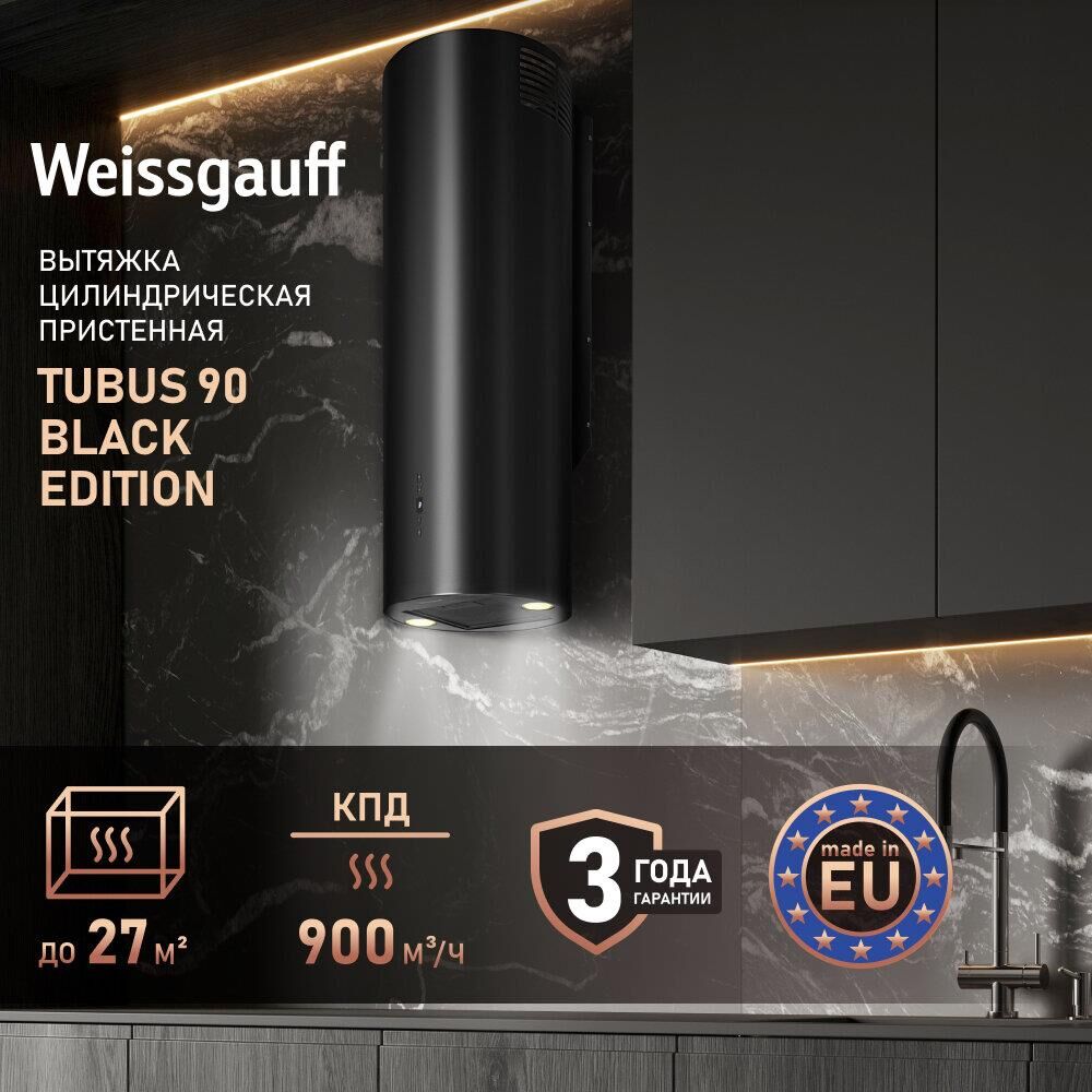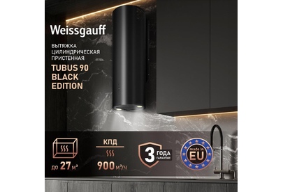WEISSGAUFF Вытяжка каминная Tubus 90 Black Edition, кнопочное управление, черный [429587]
