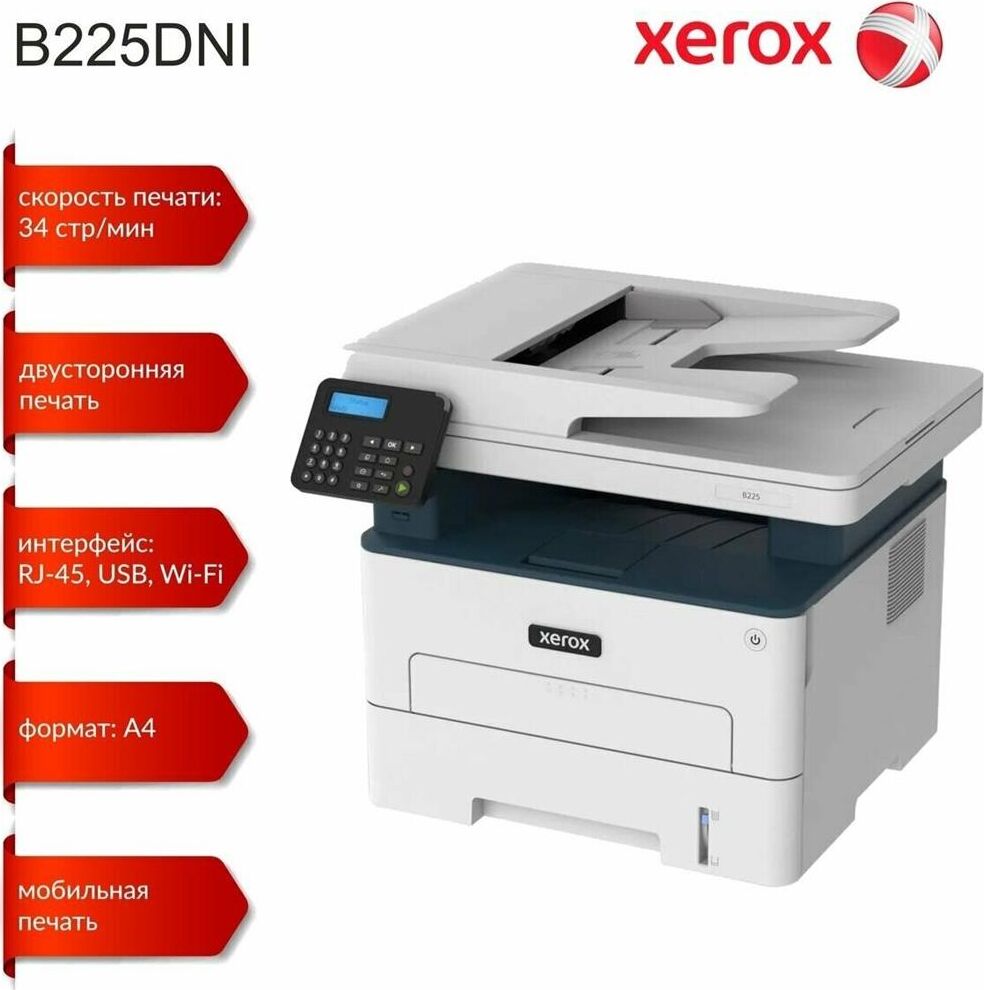 XEROX МФУ лазерное WorkCentre B225DNI черно-белая печать, A4, белый [b225v_dni]