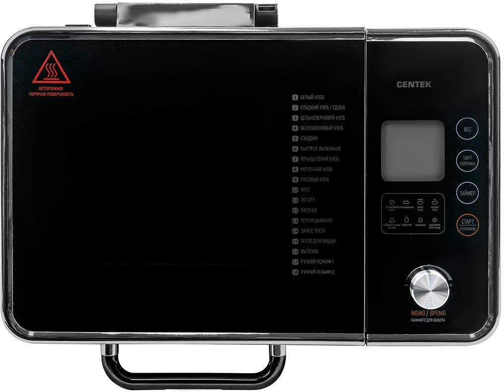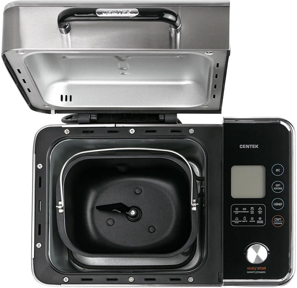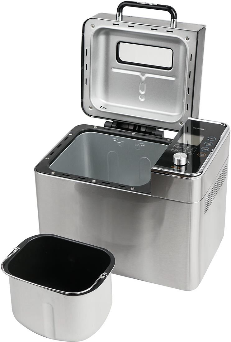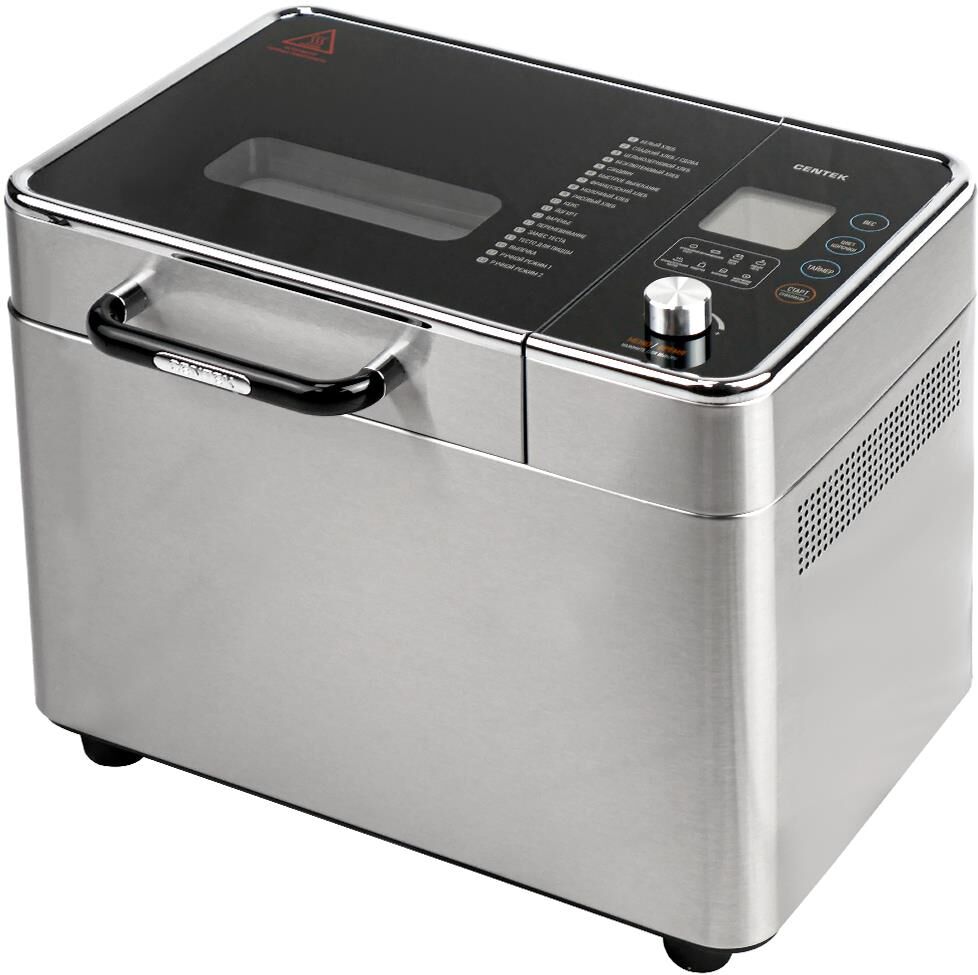 Хлебопечка Centek CT-1416 (сталь) 500/700/1000гр, 600Вт, 18 программ, LCD-дисплей, таймер 15ч, окно