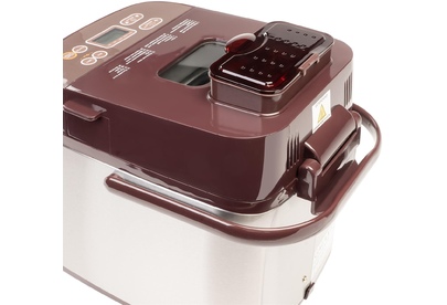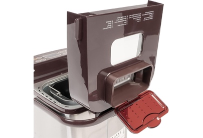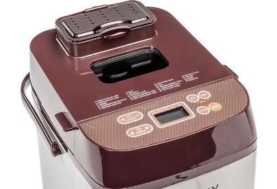 Номинальная потребляемая мощность 600 Вт Жидкокристаллический дисплей 19 программ приготовления Электронное управление Вес выпечки: 500 и 750 г 3 степени поджаривания корочки Отложенный старт до 15 часов Подогрев хлеба в течение 60 минут после приготовления Сохранение установленной программы при кратковременном отключении электричества Автоматический диспенсер для добавления ингредиентов Антипригарное покрытие контейнера для выпечки и лопасти для замешивания Ручка для переноски Прорезиненные ножки, препятствующие скольжению Большое смотровое окно Защита от перегрева Блокировка от детей Номинальное напряжение 220-240 В ~ Номинальная частота 50 Гц