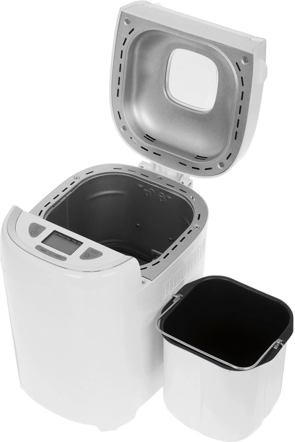 Мощность нагревателя: 550 Вт. Количество программ: 13. Программа безглютеновой выпечки. Программа «Джем». Съемная форма для выпечки с антипригарным покрытием. Количество съемных форм для выпечки: 1. Количество тестомешателей: 1. Антипригарное покрытие тестомешателей. Количество размеров выпечки: 2. Выбор размера выпечки (мин.-макс.): 750 - 900 г. Смотровое окошко позволяет следить за приготовлением. Количество программ: 13. Программа для замешивания теста. Звуковой сигнал. Функция поддержания температуры сохраняет хлеб теплым. Продолжение программы при сбое электропитания.