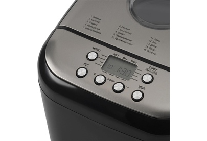 Мощность 600 Вт Максимальный вес выпечки 1000 г Количество размеров выпечки 500/750/1000 Регулировка веса выпечки Программ приготовления 19 Замес теста Выбор цвета корочки Таймер отсрочки старта 15 ч Поддержание температуры Окно контроля процесса Запоминания программы (при отключении питания) Антипригарное покрытие формы Программ для теста 3 Материал корпуса пластик Цвет черный Дополнительный цвет серебристый Гарантия 24 мес. Страна производитель Китай