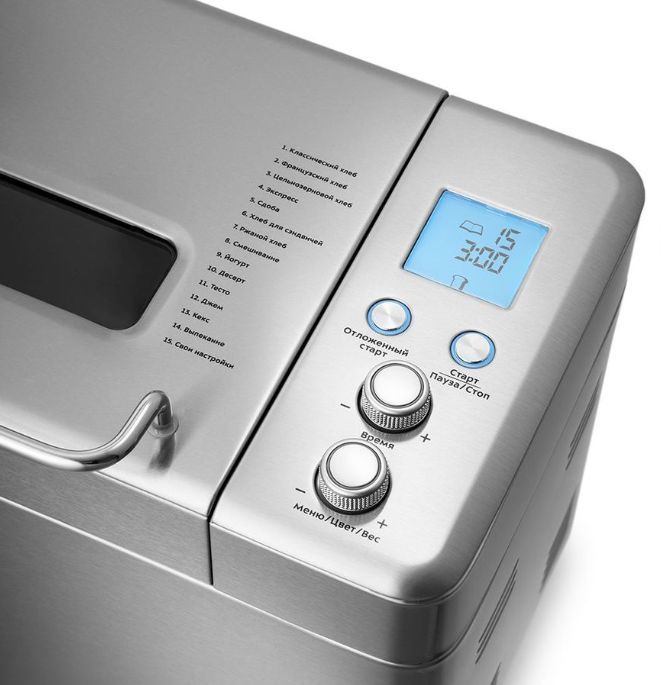 Мощность 550 Вт. Максимальный вес выпечки 1000 г. Количество размеров выпечки 500/750/1000 г. Регулировка веса выпечки есть. Программ приготовления 15. Выбор цвета корочки есть. Поддержание температуры есть. Антипригарное покрытие формы да. Варенье, джемы да. Материал корпуса нержавеющая сталь.