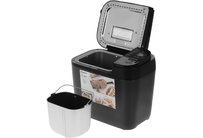 Керамическое покрытие формы для выпечки хлеба и лопатки. 28 автоматических программ: 11 программ выпечки хлеба. 4 программы приготовления без глютена. 7 программ замеса теста (включая тесто для пиццы и пельменей/вареников). Ручное управление - 3 программы. Каждая программа реализует определенный способ приготовления теста/хлеба и подходит для большого количества разнообразных рецептов. Программа приготовления варенья/джема. Программа приготовления фруктов в сиропе. Выбор цвета корочки (3 варианта: светлый, средний, темный). Выбор размера буханки (3 варианта). Диспенсер для автоматического добавления дополнительных ингредиентов (емкость - 150 г). Таймер отсрочки выпечки до 13 часов. Минимальное время выпечки хлеба 1 час 55 мин. Максимальное время выпечки хлеба 5 часов 40 мин. Антипригарное покрытие формы для выпечки . Лаконичный дизайн. Габаритные размеры - 408 x 252 x 362 мм. Вес нетто - 7 кг. Потребляемая мощность - 505-550 Вт. Цвет: черный.