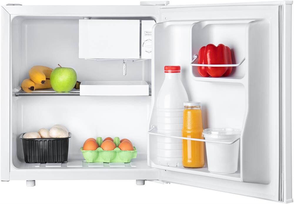 Объем холодильной камеры 45 л, объем морозильной камеры 5 л, хладагент R600A, энергопотребление 106 (кВТч/год), классэнергоэффективности A+, уровень шума 39 (дб(мв)), климатический класс ST/N, объем 50 л, регулировка температуры, кол-во дверей: 1 шт, материал корпуса металл, вес (нетто): 15 кг.