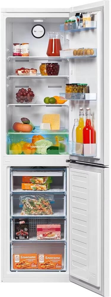 Размеры (ВхШхГ), см: 201х54х60. Общий объем 335 л. Полезный объем: хол. 200 л + мороз. 100 л. 1 компрессор (R600a). Электронное управление с дисплеем. Full No Frost, двухконтурная система охлаждения. Технология сохранения свежести Harvest Fresh. Режим "Отпуск". Энергопотребление в год: 306 кВт/ч. Уровень шума: 40 дБ. Время сохранения t°C без электричества: 18 ч. Перенавешиваемые двери. Встроенные ручки. ХОЛОД.ОТД: быстрое охлаждение Quick Cool, освещение LED, стеклянные полки (регулир., закален. стекло): 3, подставка для яиц, отделение для овощей и фруктов, полноразмерные полки на двери: 4. МОРОЗ.ОТД: быстрое замораживание Quick Freeze, 4 ящика, мощность замораживания: 7 кг/24 ч, лоток для льда, лоток для пельменей. Климатический класс SN-T. Класс энергетической эффективности: А+. Цвет: белый.